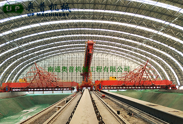 - 奧普回轉(zhuǎn)堆料機(jī)和門式刮板取料機(jī)使用現(xiàn)場(chǎng)