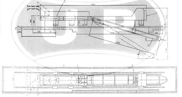 該變幅裝車機(jī)系統(tǒng)由平形膠帶機(jī)、卸袋機(jī)構(gòu)、端部溜槽、中間溜槽等組成。變幅裝車機(jī)的平形膠帶機(jī)的支架采用鋼板折彎結(jié)構(gòu),即美觀又牢固;驅(qū)動(dòng)裝置采用擺線針輪減速機(jī),節(jié)省占地面積;張緊方式為中間垂直螺旋張緊。變幅裝車機(jī)的卸袋機(jī)構(gòu)由轉(zhuǎn)臂立式膠帶機(jī)、電動(dòng)推桿和支架三部分組成,當(dāng)不需要水泥袋從中間位置卸下時(shí),立式膠帶機(jī)處于包裝膠帶機(jī)的側(cè)邊;當(dāng)需要水泥袋從中間位置卸下時(shí),由電動(dòng)推桿拉動(dòng)立式膠帶機(jī)使其擺動(dòng)與包裝膠帶機(jī)縱向成交叉位置,并開動(dòng)立式膠帶機(jī)即可。變幅裝車機(jī)的立式膠帶機(jī)的兩個(gè)擺動(dòng)極限位置設(shè)有限位開關(guān),其在工作和非工作狀態(tài)下的定位由限位開關(guān)來實(shí)現(xiàn)。特殊設(shè)計(jì)的溜槽能使水泥袋恰好落到膠帶機(jī)的中心位置。