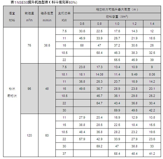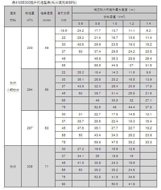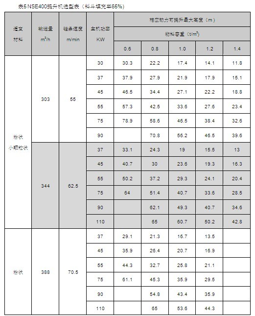 NSE系列高速板鏈斗式提升機共有九種基本型號:NSE100、NSE200、NSE300、NSE400、NSE500、NSE600、NSE700、NSE800、NSE1000,每種型號根據(jù)輸送物料的不同,選擇不同的提升速度,提升速度上限<70m/min,提升高度上限65m。另外,奧普公司還可根據(jù)用戶要求輸送量介于上述型號之間的擴展型號。