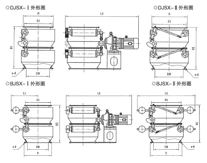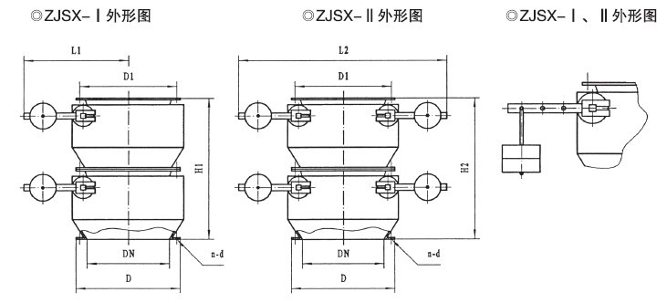 鎖氣翻板卸灰閥為上下交替開閉,自動復(fù)位機構(gòu)。分為:z為重錘自動復(fù)位機構(gòu),具有運轉(zhuǎn)平穩(wěn)、節(jié)能,卸灰量大、小可調(diào),卸灰、鎖氣可靠之功能。C為吊錘自動復(fù)位機構(gòu),具有占地面積省、節(jié)能,卸灰調(diào)節(jié)方便,卸灰、鎖氣可靠之功能。B為凸輪、連桿傳動,重量自動復(fù)位機構(gòu);D為凸輪連桿傳動,彈簧自動復(fù)位機構(gòu),結(jié)構(gòu)緊湊、設(shè)計合理、運轉(zhuǎn)平穩(wěn),卸灰、鎖氣可靠。是各種無粘度的固體粉料,小于Φ10mm的顆粒料,晶體料,團狀料,給、卸料工況的理想設(shè)備。Ⅰ型為單板卸料,Ⅱ型為雙板卸料。