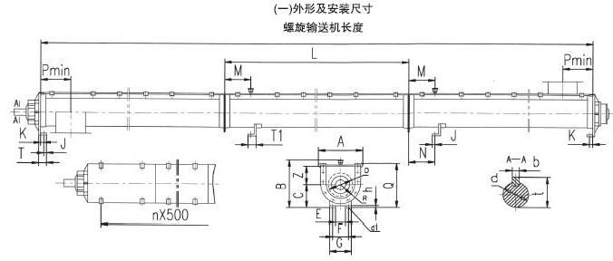 GX型螺旋輸送機(jī)安裝尺寸及長度組合