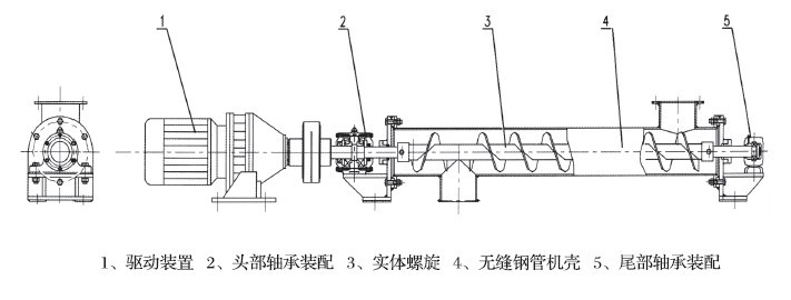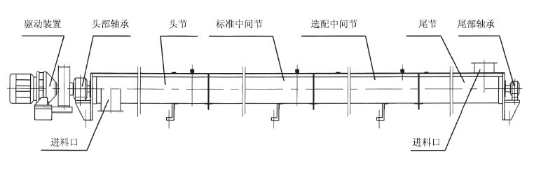 一臺螺旋機(jī)通常按驅(qū)動裝置、頭節(jié)、若干標(biāo)準(zhǔn)中部節(jié),選配中間節(jié),尾節(jié)順序組成,除頭節(jié)機(jī)殼和選配節(jié)外,各節(jié)螺旋及機(jī)殼均具有互換性,在出料端螺旋有清料裝置,安裝時注意位置。